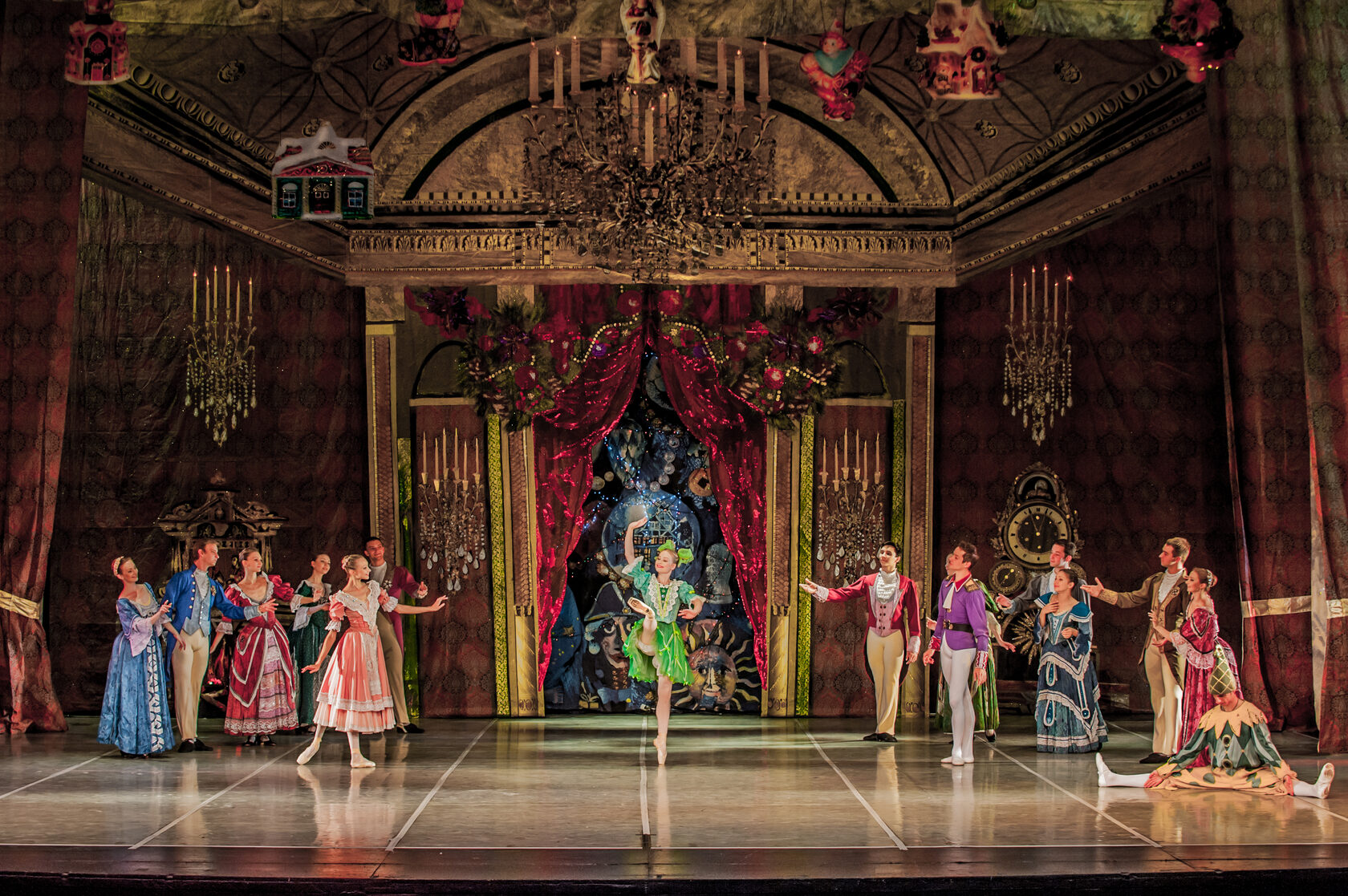 Drosselmeyer now appears. But instead of her kind godfather, he has turned into a wizard. At a wave of his hand everything around them is transformed: the walls of the room slide back, the Christmas tree starts to grow. And all the toys come alive and grow together with the tree.