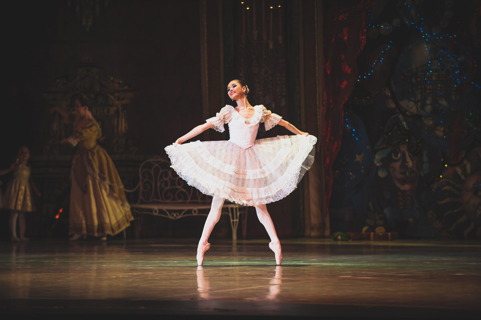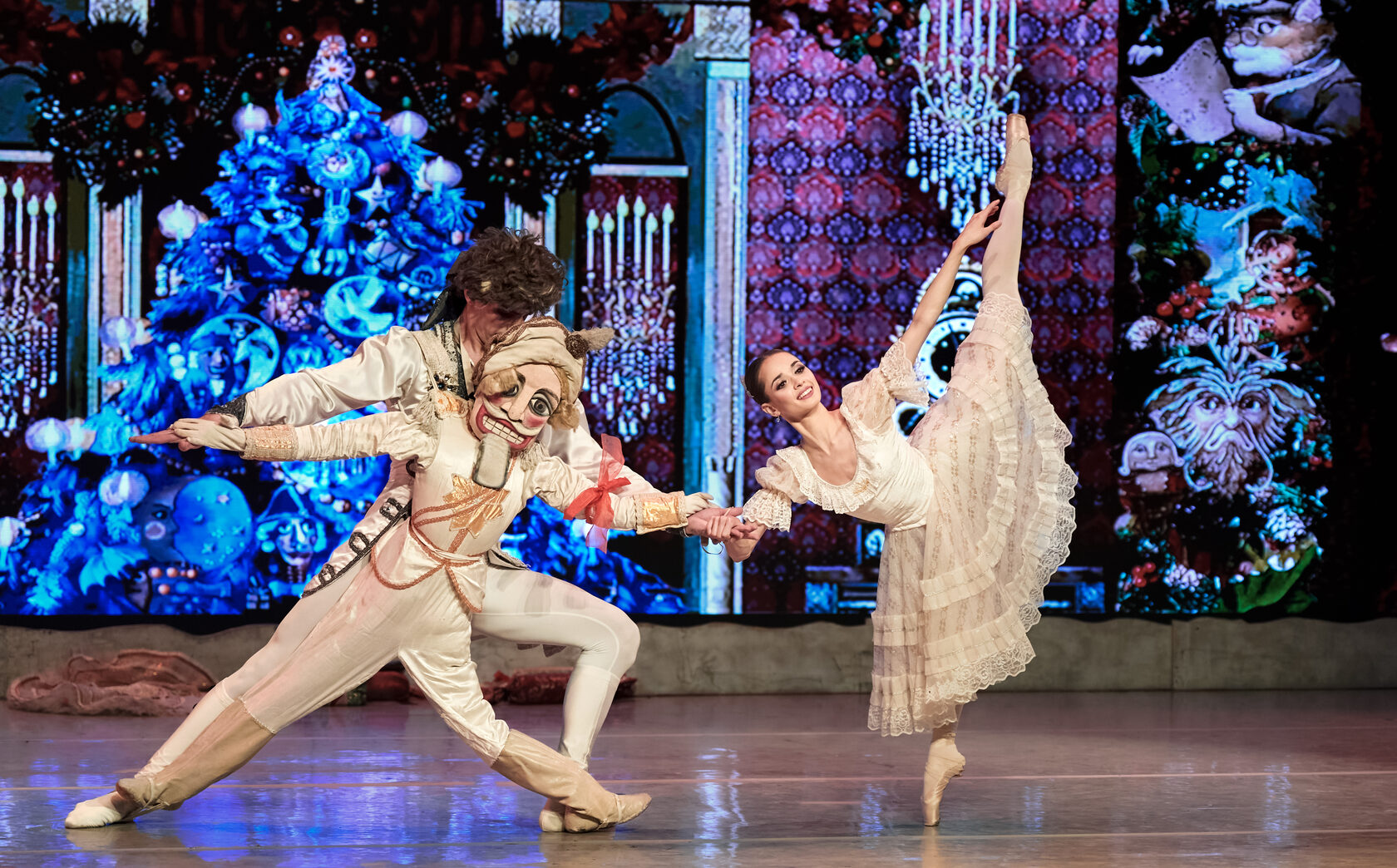 But above all, the choreographers aimed — and succeeded brilliantly — to imbue the performance with love. And not only through the dramatic concept: here, more than one happy couple is shown. Kasatkina and Vasilyov’s version features brotherly and sisterly love, parental love, the devotion of a mentor to their students — and even Queen Mouserink loves her awkward little son! Marie is surrounded by love; she lives and grows in its atmosphere. This is what makes the fairy-tale world closer to the real one — the way it should ideally be. A performance with such a message, of course, cannot end with Marie simply waking up. Whom will she meet in the living room after her wondrous dream? Come and see. Christmas wouldn't be Christmas without The Bolshoi Ballet's The Nutcracker. Come and enjoy Mary and Franz's wonderful adventures as they meet a magician with strange secrets, join an army of valiant toy soldiers to fight a villainous Mouse King and take a trip to a land where everything is made of sweets. This really is an evening of magic: classical ballet at its most visually entrancing, with something to appeal to everyone, young and old. Tchaikovsky's sparkling, effervescent score contains a wealth of famous melodies, and the production is a visual delight from start to finish. Come and experience some special magic this Christmas and into the New Year. SynopsisAct I Guests are gathering for a Christmas party at the Stahlbaum home. Among them are Drosselmeyer, godfather to Marie and Fritz, the Stahlbaums’ children. He has brought them a wonderful present: a funny Nutcracker.
