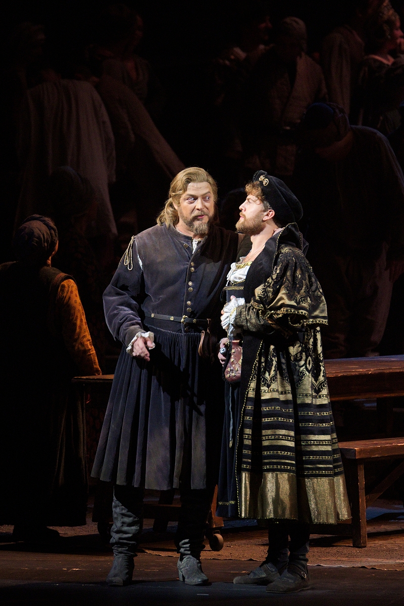 A delegation arrives from Venice. Othello is temporarily recalled, and Cassio is appointed in his place. Unable to control his fury, Othello insults Desdemona in public. Those around are stunned. Iago triumphs.