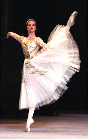 Since 2002 she has been constantly cooperating with the “Russian Ballet” theater under the guidance of V. Gordeev. There she dances in Chopiniana (The 7th waltz and Prelude, 2002), The Sleeping Beauty (Lilac Fairy), The Lively Garden scene (Le Corsaire by A. Adam, choreography by Marius Petipa, Medora, 2004)