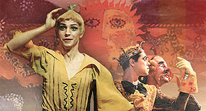 There is a square of a fairy-tale town. Standing in the square are what seem to be baskets of vegetables and boxes of fruit. But appearances can be deceptive, and, in fact, these are big and small houses which are lived in by vegetables and fruit who are extraordinarily reminiscent of real people. The Radish and Onion families meet in the square. Mother Cipolla and Father Cipollone are ticking off their irrepressible son, Cipollino, who is fed up with having to look after his sister, Cipolette. Nearby cobbler Grape is mending shoes. Grandfather Pumpkin is searching for bricks so he can build himself a house. Professor Pear is playing the violin, and all the inhabitants of this fairy-tale town are dancing. Suddenly, Signor Tomato rushes into the square and announces that very soon Prince Lemon himself, who wishes to address his people, is due to arrive in the square. The Prince has issued a new law; everyone must now pay for their share of the sunshine, the rain, and the wind. The Prince`s subjects are indignant. In the general crush, Cipollino accidentally steps on Prince Lemon`s foot. The Prince`s bodyguards take umbrage. His Royal Highness has been insulted! The ‘rebel` must be punished. But he has disappeared, so the police arrest old Cipollone. It is not only the Onion family who is grieving. Grandfather Pumpkin is having a tough time because he will never succeed in building himself a house on his own. So the inhabitants of the town, led by Cipollino, give him a helping hand. No sooner is the building work completed, than Signor Tomato appears once again. He almost bursts with anger when he sees the house. It has been built on the land belonging to the Countesses Cherry. Only the Countesses Cherry may make use of this land. Prince Lemon`s bodyguard pull down Grandfather Pumpkin`s house. The poor old man is in despair. Cipollino decides to take revenge on his enemies. Act II