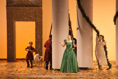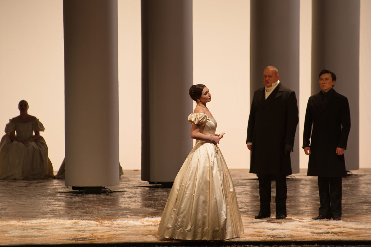 The current production of Eugene Onegin entered the theatre’s repertoire in the very first season after its grand reconstruction. Its creators approached Stanislavsky’s legendary staging with profound respect, yet without imitation. The psychological richness of the characters remains meticulously developed, and the iconic columns still form the central element of the set design. And yet, the atmosphere is different: these are characters who breathe the air of today, reflecting the pulse and sensitivity of the 21st century audience.