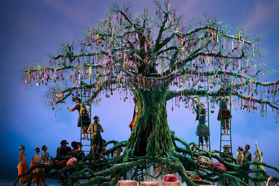 Perdita, the abandoned daughter of King Leontes and Queen Hermione, has been raised by the shepherd who found her. She dances beneath the great tree with her love, Prince Florizel, the son of Polixenes, whom the other villagers know only as a shepherd boy. The villagers arrive for the annual springtime festival. King Polixenes, who has heard that his son has been cavorting with a shepherdess, sends his steward to spy on the young prince. When the steward confirms his suspicions, Polixenes is enraged, and demands to see for himself.