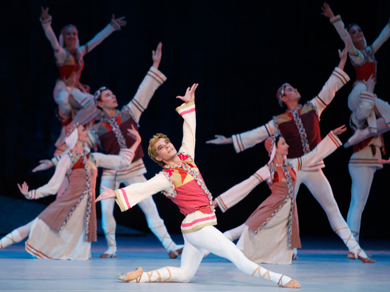 On the stage of the State Kremlin Palace, Andrey Petrov’s production transforms this springtime tale into the power of an ancient pagan myth. A grand stage, dazzling costumes, monumental sets, original choreography, the perfection of classical dance, and the theatrical skill of a talented company combine to create an unforgettable and magical experience for both young and adult audiences alike.