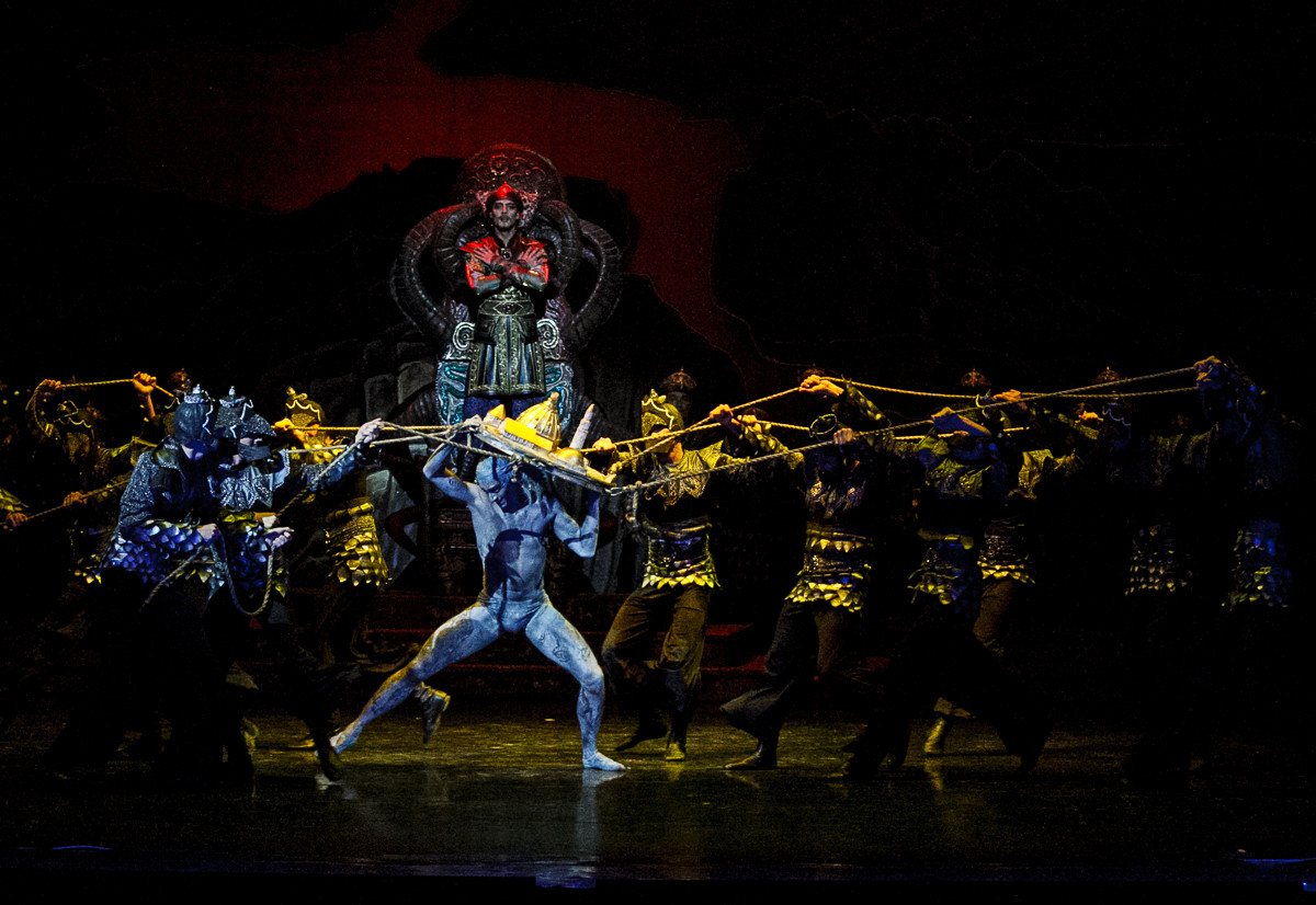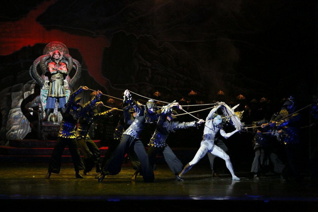 The performance includes battle scenes, sumptuous meals and a love triangle. The spirit of khan Batiy that throughout the show tries to save the Golden Horde from collapse plays an important part in conveying the message. Historical facts are presented with maximum accuracy and at the same time the authors, with the help of artistic fiction, highlight the main idea, that one needs to cherish one’s native land and protect it from war and irreversible destruction.