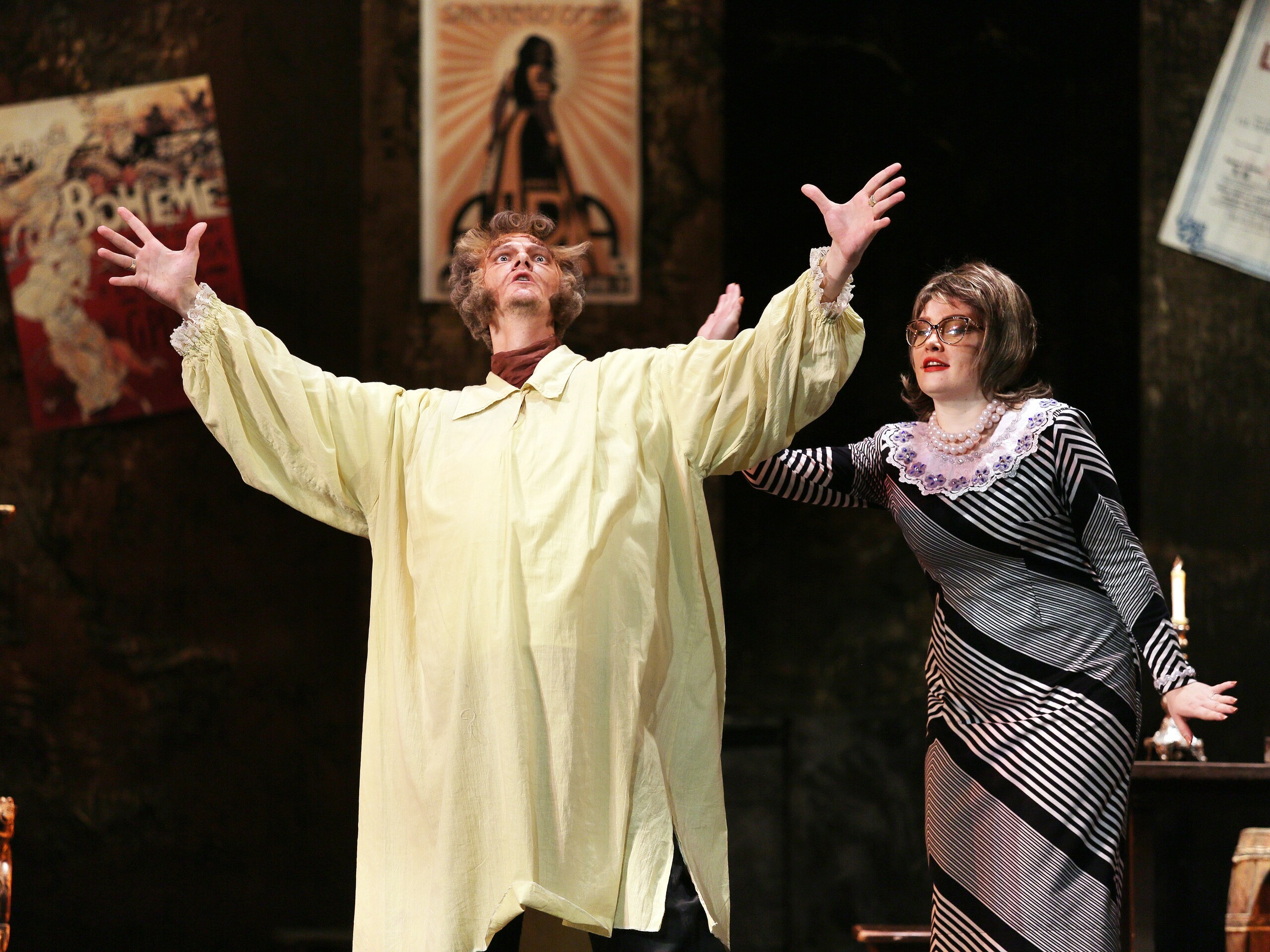 The action takes place in the modern world. Sir John Falstaff is a fat, elderly, narcissistic opera singer who suffers many love failures, but he is still the same born comedian, able to adapt to any circumstances and from any situation to extract the maximum benefit and fun for himself.