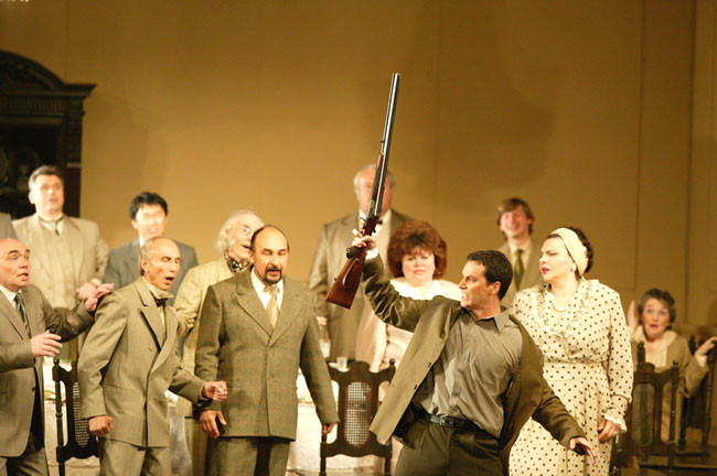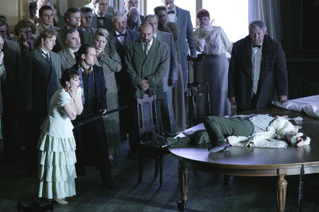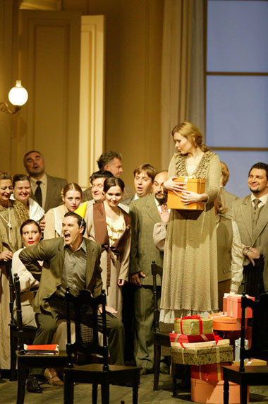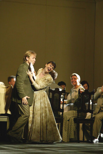 Lensky has persuaded Onegin to pay another visit to the Larins. But he is irritated by everything. Deciding to punish Lensky for bringing him, he demonstratively flirts with Olga. Olga’s prompt response to Onegin’s advances, afflicts Lensky. He picks a quarrel with Onegin and challenges him to a duel.