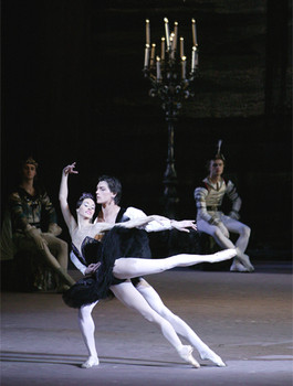 Suddenly, a mysterious knight arrives at the ball accompanied by a ravishingly beautiful young girl and a suite of black swans. It is the Evil Genius and Odile, Odette’s double. Struck by their resemblance, Siegfried hurries towards Odile. The Evil Genius is putting the Prince’s sentiments to the test. Siegfried is enchanted by the perfidious Odile who manages to disarm him of all his doubts. He announces Odile to be his chosen bride. At this very moment, the throne room is plunged in darkness and a vision of the beautiful Odette appears before the assembled company. Siegfried realizes that he has become a plaything in the hands of Fate. Hoping to atone for his betrayal, he rushes in despair after the receding image of the white swan.
