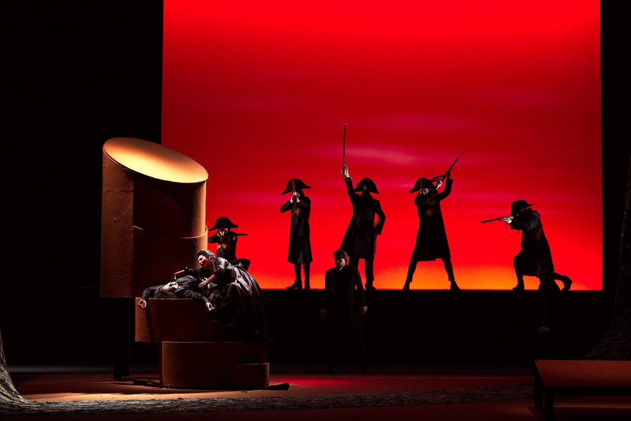 Mario is carried in; realizing what has happened, he rages at Tosca, but the gendarme Sciarrone rushes in to announce that Napoleon has won the Battle of Marengo, a defeat for Scarpia’s side. Mario shouts his defiance (“Vittoria!”).